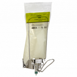 Efficient and practically designed stainless steel dispenser for 0.5, 1.0 l bags and 1.0 l bottles. The dispenser is made for both soap, lotion and disinfection products. Hygienic dispenser design with products kept in airtight bags for prevention of bacteria growth. Elbow-operated dispenser; reduces infection transmission. Easily mounted, operated, cleaned and refilled. Easily cleaned and the design prevents accumulation of unwanted dirt and bacteria growth. Environmental design as product package sizes reduces waste to a minimum. The optimum solution for a large number of segments including hospitals and old-age homes that need to comply with extraordinary hygiene requirements. Dimensions: H: 240 x W: 100 x D: 165 mm