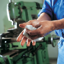 Skin-friendly, industrial hand cleaning wipes without abrasives
